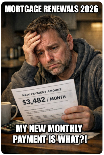 A huge amount of mortgage renewals are about to be signed. It is estimated that between 20%-30% of Canadian mortgagors will be renewing their mortgages in 2026.